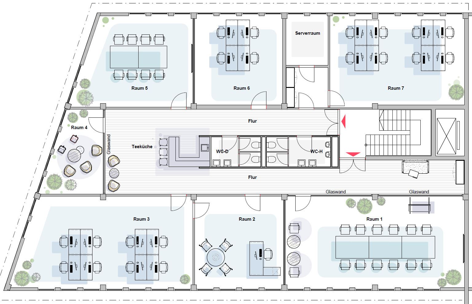 Kombination von Einzel- und Gruppenbüros - Raumaufteilung nach Wunsch